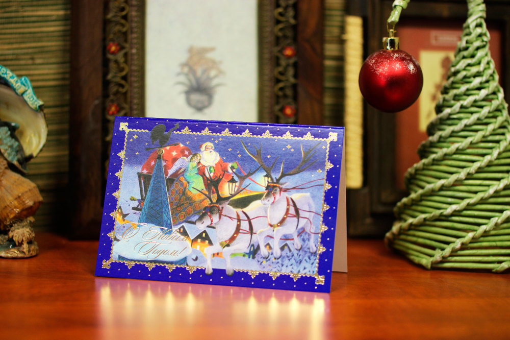 Шаблон №27202, Открытка синяя шаблон, Новый год