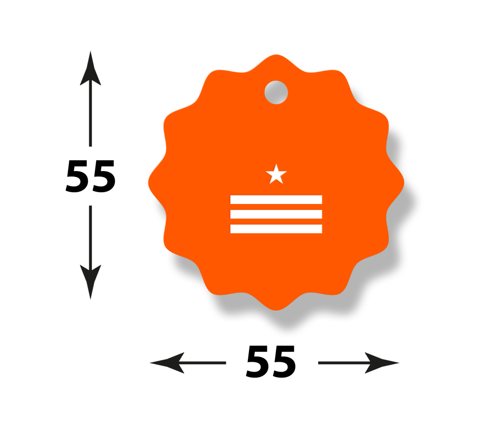 Печать бирок с использованием дополнительных цветов: металлизированная печать золотом (PANTONE 872 C), серебром (PANTONE 877 C) и насыщенным оранжевым (PANTONE Orange 021 C)